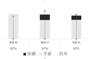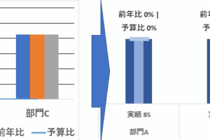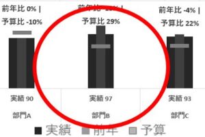 会議で業績を確認する資料として、無造作に前年実績・前年比・予算設定額・・・などの各種数字が並んだグラフをよく目にします 見やすいように色を変えたり、折れ線グラフを取り入れたりしますが、色やグラフ種類が多すぎて、かえっ…