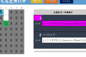 前々回に試して頂いた「めいろ1」ですが、「X」の壁にぶつからないで「オバケ」をつかまえられたでしょうか? もし、壁にぶつかると条件分岐処理によりペンギンは止まります 今回は、この条件分岐の処理を体験して頂きます 通常のI…
