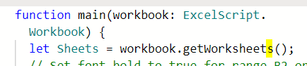 「workbook.getActiveWorksheet()」すなわちファイル内の「アクティブ=選択・処理しているシート/単数」を「selectedSheet」に当てはめています