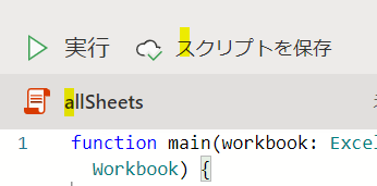 コードの修正が完成したらコードの保存を行い、名称(allSheets)を付けます