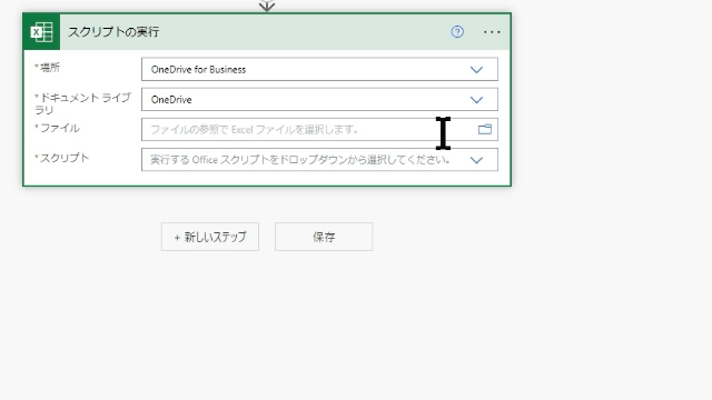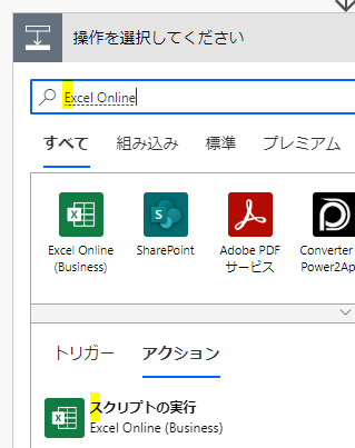 次は「スクリプト(オフィススクリプト)の実行」アクションを設定します