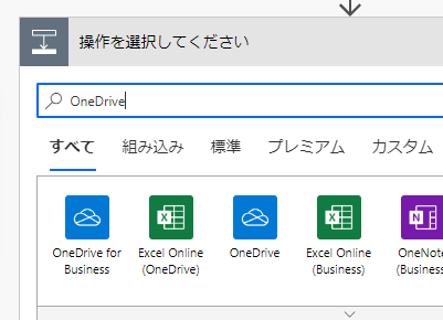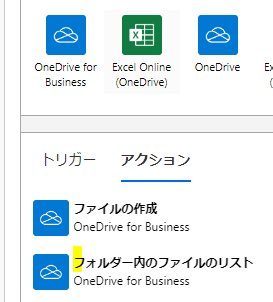 次にOneDrive関連のアクションから「フォルダー内のファイルリスト」を選択します