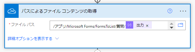 ファイルコンテンツの取得には「パスによるファイルコンテンツの取得」アクションを使用します