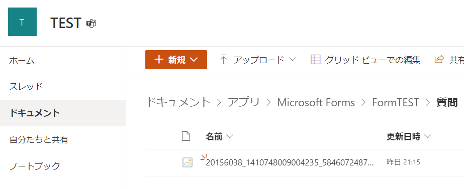 こちらのフォルダ内にも、Forms内にアップロードされた画像がアップロードされます