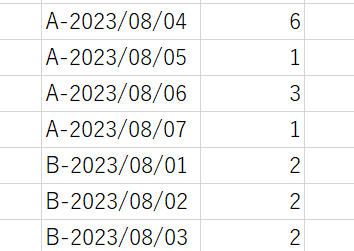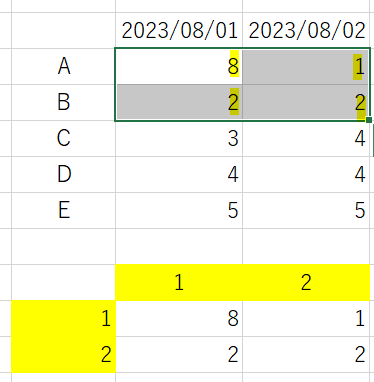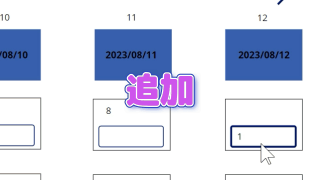 2023/08/11が最終日付でしたが、「2023/08/12」を追加すると列方向に追加されます