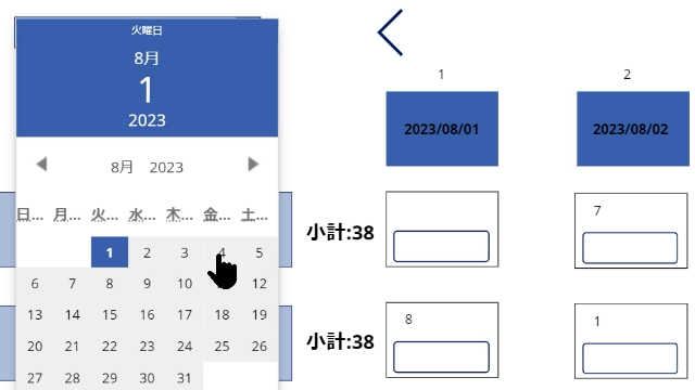 2023/08/04を指定すると、それ以降の日付のみに表示が変わります