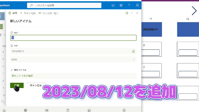 Sharepointリストに2023/08/12を追加すると12番に日付が追加されます