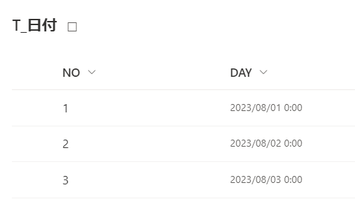こちらは日付データを用意します