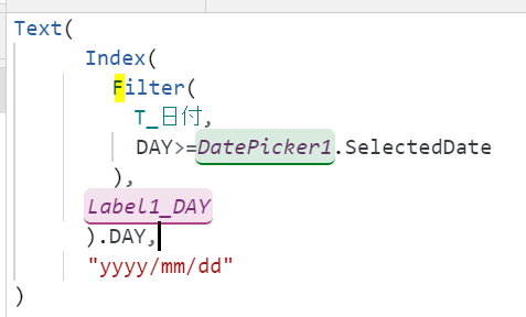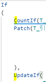 Patch(T_引当,Defaults(T_引当),{fukugoukey:(Label1_PRODUCTID.Text &”-” & Label1_DAYCOLUMN.Text), ProductID:Label1_PRODUCTID.Text,