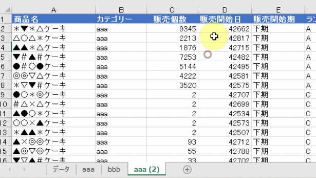 そうすると、自動的に「カテゴリー」が「CCC」のデータが元のデータから自動抽出されています