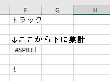 新ダイナミック関数の全般に言えることですが、関数の出力範囲のセルに「なにがしかの入力」があると次の画像のようなエラーがでます