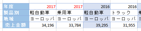 そして、年度は昇順にて並び替え、売上金額は降順で並び替えます