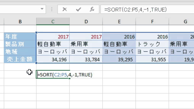4つ目の引数に「TRUE」を指定するとの並び替えとなります