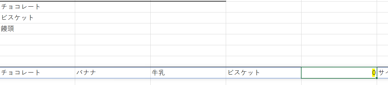 今回は第二引数を指定してないので、空欄は0で出力されます