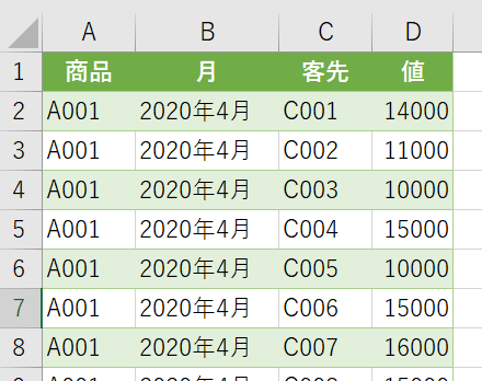 例えば、データを閲覧するだけであれば、ピボットテーブルで変換することも「データがきちんと蓄積」されていれば可能です