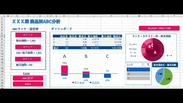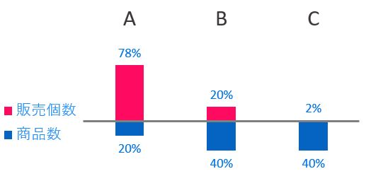このグラフデザインだとABCのランク別に、販売個数と商品数の比較が行い易くなります