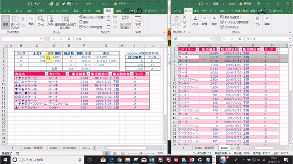 上のGIF画像では、画像上の表にて、ランク別に上位の比率を変更すると、元データのランクが自動的に変更されていきます!