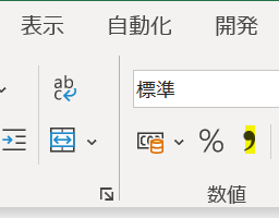 セルの上のリボンから「コンマ」を選択するだけです