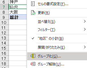 グループ化及び解除