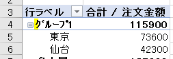 グループ化を行う時には、数値や日付でグループ化する時とは違い、まずはグループ化の対象をCtrlキーを押しながら指定します