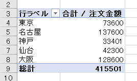 地区別の注文金額をデータとして使用します