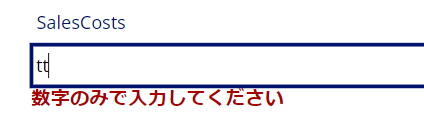 数字形式の入力が必須の箇所で、文字列が入力されるとエラーが表示されるようにします
