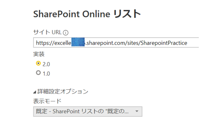 今回はSharepoint内の「SharepointPracticeサイト」というサイト内のリストからデータを取得します