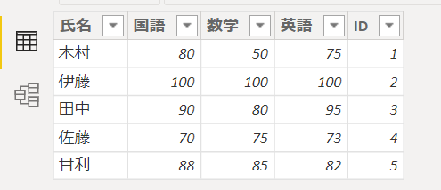 取得するリストは点数というリストです