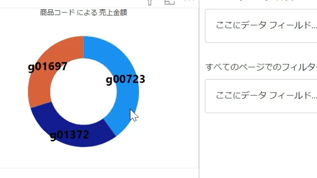 上のGIF画像では1ページ目にて、円グラフ内にある3商品の中から深堀する商品を選択した後に、2ページ目で該当商品の時系列の動きを確認できるようになっています