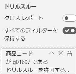 ドリルスルーを行う際にフィルターをかけていると、フィルターした項目はドリスルーを設定したページに引き継がれます