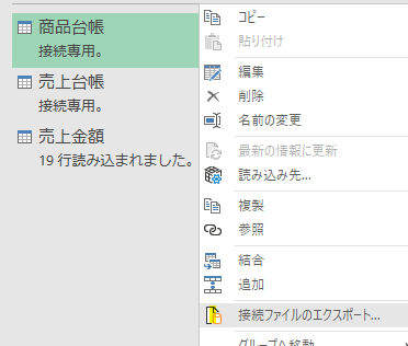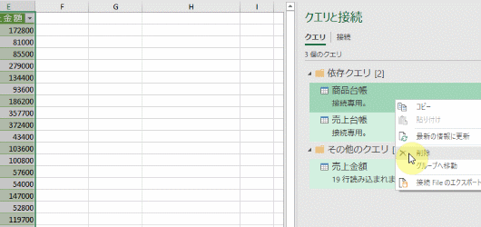では、他2つのクエリに依存している「売上金額クエリ」を別ファイルにコピーしてみます