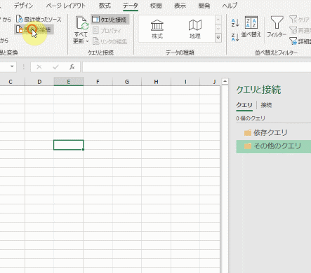 クエリの復元は、前述のようにデータタブにある「既存の接続」から行います