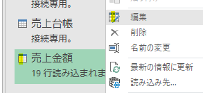 まず「売上金額クエリ」の上で右クリックして、Power Queryエディタ(以降、エディタ)を開きます