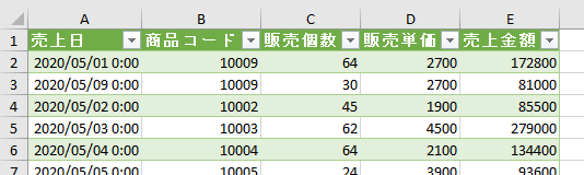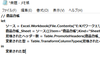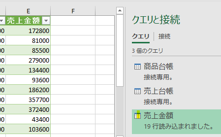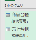 売上台帳クエリは①の商品台帳クエリと違い、売上金額クエリが存在するファイル内からデータを取得していることが分かります
