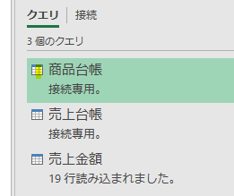 ちなみに上の図に、「読み込まれていません」とありますが、こちらはクエリの読込先が「接続のみ」になっていることを表します