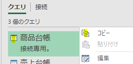 まず、商品台帳クエリを別ファイルにコピーします