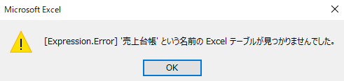 別ファイルには、もちろん「売上台帳クエリ」の取得元になるテーブルはありませんので、売上台帳クエリはエラーになります