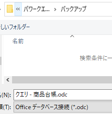 するとクエリのバックアップ先を指定する画面が出ますので、そちらに保存処理を行います