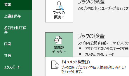 更に「問題のチェック」の右下にある▼マークをクリックした後に、「ドキュメント検査」をクリックします