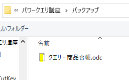 では冒頭で紹介した、「事例として使用するファイル内」にある「商品台帳クエリ」をバックアップします