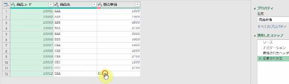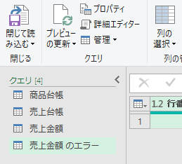 エラーの中味を確認したら、画面右の「適用したステップ」に追加されたステップを削除して元の画面に戻ります