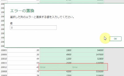 すると「エラー」をどの値と置き換えるかを聞かれます