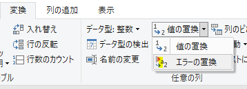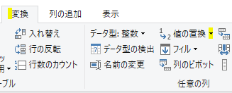 まず、変換タブの「値の置換」の右横の▼マークをクリックします