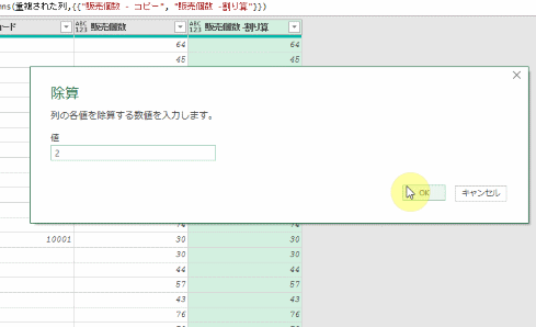 後、列コピーをするのに右で処理するのではなく「列の追加」タブの「重複する列」というボタンを使用するのも、少し分かりずらいですね