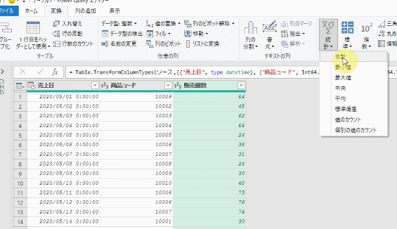 Power Queryエディター内の「変換タブ」と「列の追加タブ」では、集計処理のためのメニューが豊富に揃っています