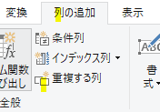但し、Power Queryエディタ―独自の表記の問題で、変換タブと列の追加タブでメニューが重複しています