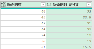 では、コピーした列の列名を「販売個数ー割り算」に変更した上で、「割り算」による集計を行います