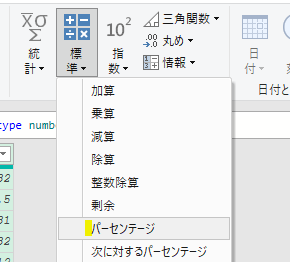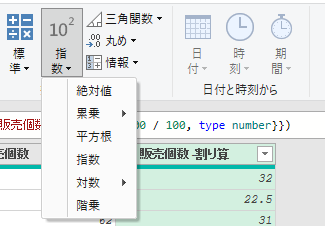 変換タブと列の追加タブには、統計以外は同じメニューがあります