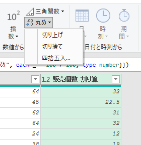 今回の解説では、下の図の2.の解説で2で割り算をした列を「切り上げ」処理をしてみます