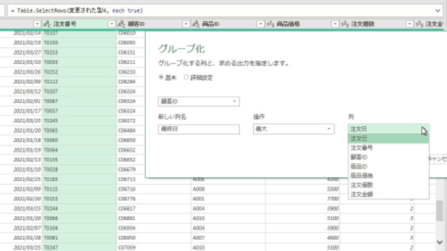 今回は、グループ化機能により注文データから顧客ID毎に最終注文日を集計しました